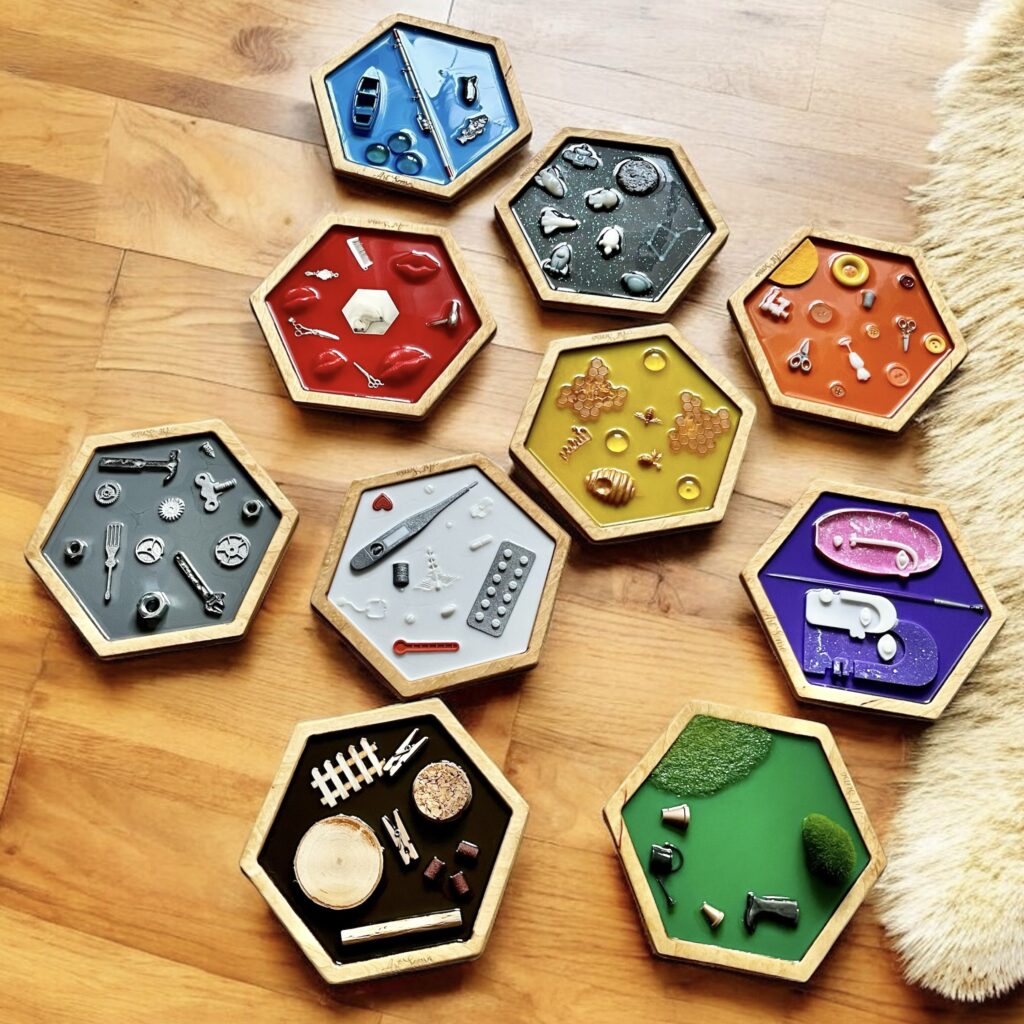 Odkryj kolorowy świat zawodów z naszą ścieżką sensoryczną inspirowaną metodą Montessori! Dotykaj, dopasowuj, ucz się i baw – z kartami trójdzielnymi i edukacyjnymi atrybutami każde dziecko wejdzie w rolę lekarza, astronauty czy pszczelarza!