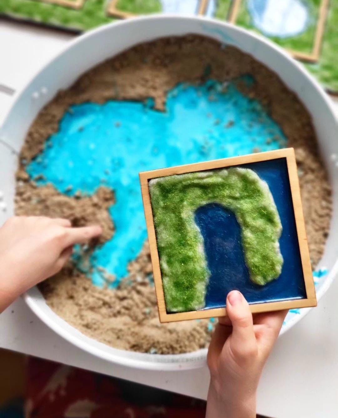 Przed Wami świetna pomoc dydaktyczna, która w przyjemny sposób pomoże dowiedzieć się jakie mamy formy ukształtowania lądu i wody, a przy okazji dostarczy sensorycznych wrażeń 🙂