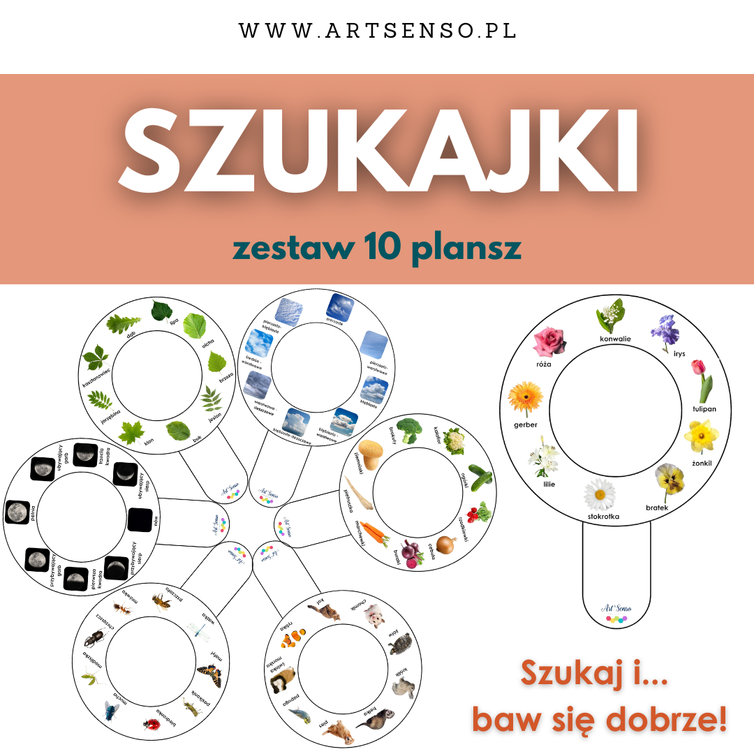 „Szukajki” są świetnym narzędziem przede wszystkim służące jako zabawa, a przy okazji nauka. Przeznaczone są dla dzieci od 3 roku życia (chociaż nasza córka zaczęła już wcześniej przygodę z tymi materiałami :))